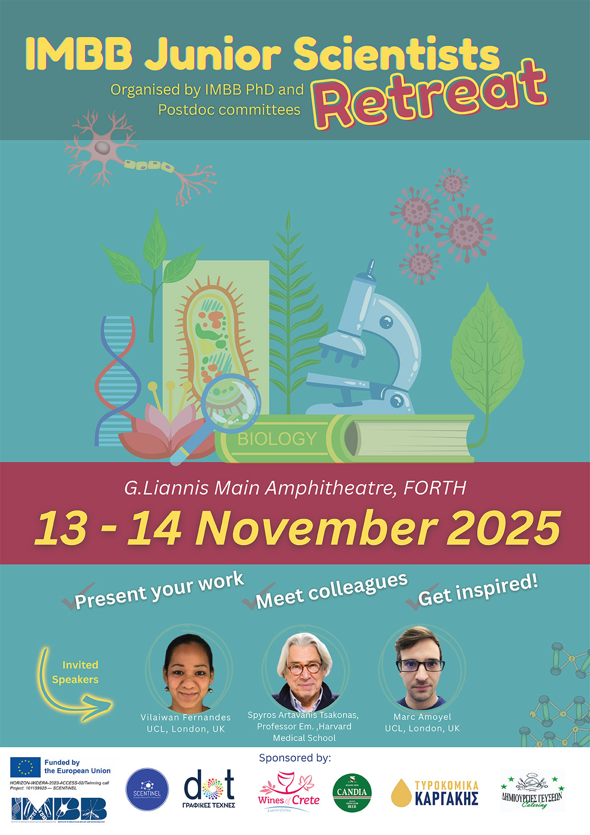Η Συνάντηση Νέων Επιστημόνων IMBB 2025 θα πραγματοποιηθεί στις 13–14 Νοεμβρίου 2025 στο κεντρικό κτίριο του Ιδρύματος Τεχνολογίας και Έρευνας (FORTH) στο Ηράκλειο, Κρήτης, Ελλάδα.